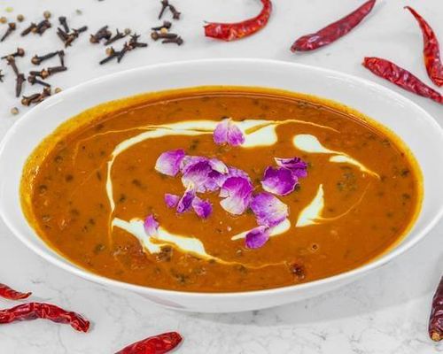 Black urad and red kidney beans cooked with cream and tomatoes flavoured with fenugreek.