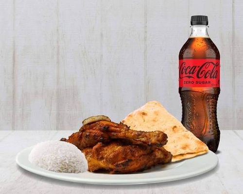 Tandoori Quarter Chicken with plain Naan and Rice and Choice of Any Coca-Cola 600ml Variety